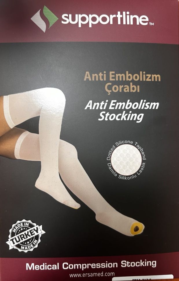 Антиемболичните чорапи с коланче и отворени пръсти 7/8, са специализирани медицински чорапи, обикновено се използват за подобряване на кръвообращението и предотвратяване на образуването на съсиреци (емболия), което често може да се случи по време на дълги периоди на неподвижност, като например следоперативно възстановяване.